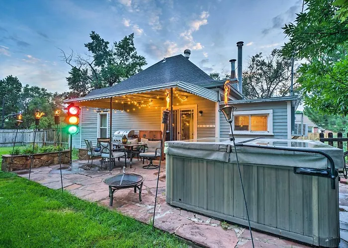 Colorado Springs Home With Hot Tub - 1 Mi To Dt! oferece uma acomodação em 20 minutos de carro do aeroporto em Colorado Springs Peterson Field. Vila está equipada com cozinha, e também inclui cofre pessoal, internet de alta velocidade e TV nos quartos.